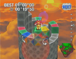 前半は前作よりも『やさしく』なっていて、一方向にしか転がせない『矢印ブロック』が最初は出現しませんし色が付いたブロックが多く出現するようになっています。また、連鎖の制限時間も『ゆるく』なっていますので、段差を登り降りさせても連鎖できますし『ある程度までは』考える余裕もあります。